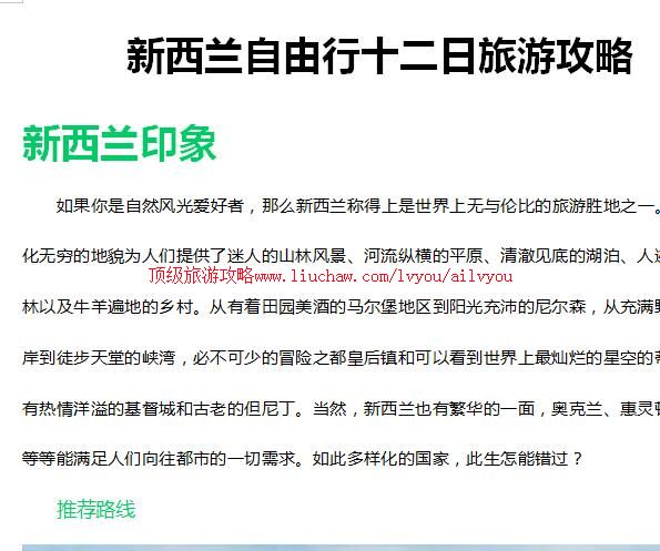 xl001新西兰自由行十二日旅游攻略售20元